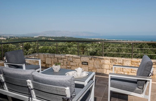 Additional amenities include a pillow menu with various pillow types, a wardrobe with extra linens, and complimentary baby equipment such as a cot and high chair. Villa Sirius provides a quiet setting with expansive views and serves as a practical base for exploring western Crete.