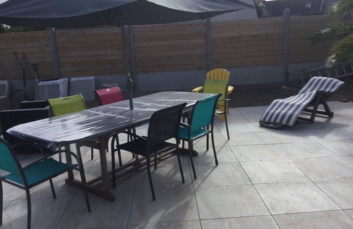 Maison de vacances comprenant 1 espace cuisine toute équipée ouverte sur séjour et salon (Grd espace) Etage : 2 CH. avec lit 160 + 1 CH. avec 2 lits 90. - 1 SDB avec baignoire/douche- 1 SDB avec douche - 2 WC séparés - Salon avec 2 canapés 3P+2P - 3 fauteuils-TV Sony Bravia - 1 Cellier compr. LL & SL neufs à disposition-Divers : Four Encastrable et 1 micro-ondes/.-Réfrig - table induction-hotte- cafetière DolceGusto -Jeux - livres - Jardin clos - Salon de jardin 4p+ 1Table basse - 1 Table 8 places et chaises sur terrasse carrelée de 50m2- 2 vélos H&F à disposition- 1 douche extérieure- barbecue bois- Wifi débit moyen inclue. *TARIFS SELON LES SAISONS