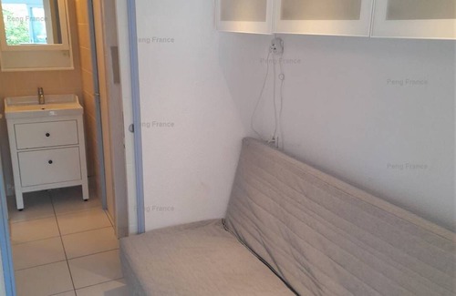 Bedroom, partitioned off from the living room by a room devider, with a double bed 200x200 cm.