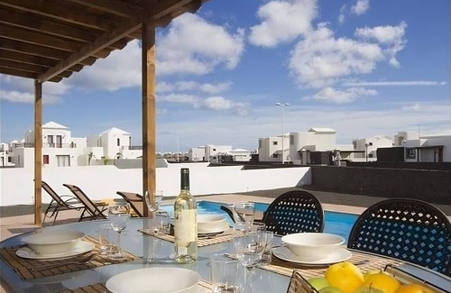 Located on the west side of Playa Blanca, Villa Tamara is ideal for those who do not want to rent a car. There is a selection of restaurants, bars and a couple of supermarkets within a 5 minute walk, and the beautiful beachfront promenade is also close by. The bus station stops 5 minutes from the villa; the bus leaves every 30 minutes, 7 days a week and visits all the notable places of the city (city center, beaches, shopping center, Marina Rubicon, etc.) The villa has a private terrace where the master bedroom is located. If you want to activate the pool heating you must register the message, its cost is 10€ per day.