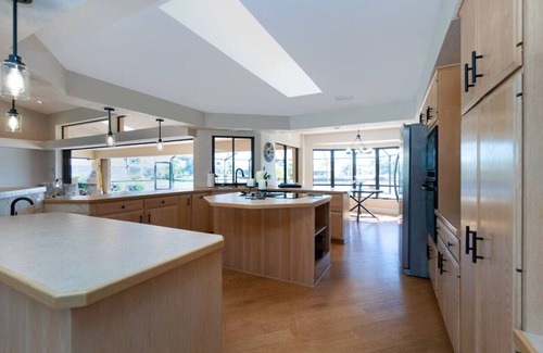 At the other end of the Villa, are two beautifully furnished bedrooms with closets and a shared bathroom, complete with tub, shower, and double sink vanity. This property accommodates up to 8 overnight guests. Three king beds and 1 queen hide-a-bed are available. Kindly seek prior permission before hosting additional visitors.