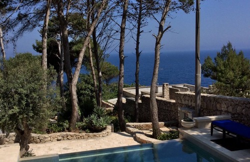 Seafront villa located at the Grotta Zinzulusa a stone's throw from Castro Marina and Santa Cesarea Terme. Immersed in an age-old pine forest and succulent plants typical of the area in the garden, the villa consists of a central part and a bungalow.