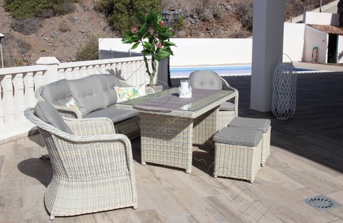 Best-rates for the Costa Adeje villa starts from $408 per night with includes Spa, Security/Safety, Laundry, Pool, Sports/Activities, Bedding/Linens, Guest Services, Entertainment, Kitchen, Air Conditioner, Parking, View, Private Pool, Ocean View, Wellness Facilities, Barbecue/Outdoor Cooking, Internet, TV, Balcony/Terrace, Oceanfront with all other facilities. Casai.ca matches every traveler with their perfect accommodation, whether you are traveling with a group, friends, family, or pets.