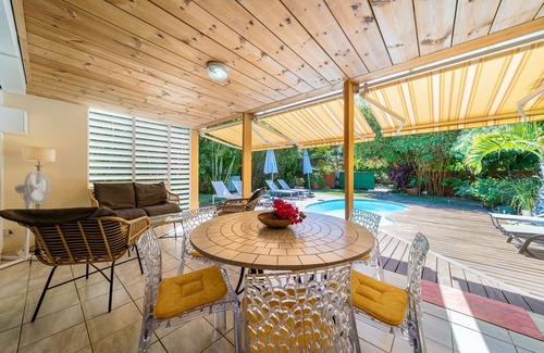 A very pretty renovated villa with swimming pool and a large garden awaits you at the Saline Les Bains. This comfortable villa is ideal for holidays with family or friends. You will appreciate the calm of the environment while having shops and amenities nearby. Direct access to the lagoon (a short minute walk) with no road to cross (ideal for children) will allow you to access various activities sports (windsurfing, pedalo, kit-surfing) o no fear to have concerning the sharks which do not absolutely frequent the lagoon. A kayak is available to vacationers. A few meters away, nice restaurants will show you their local cuisine or other dishes. No worries about your vehicle, the parking is private.