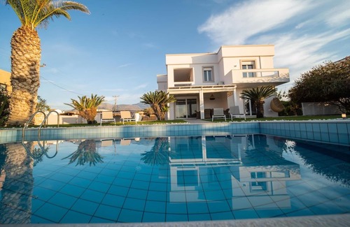 The villa is located 80 meters from the sea, just a few minutes walk from a beautiful, well-kept beach and the picturesque village of Sissi. With stunning sea and mountain views. An ideal combination for the perfect summer holiday with family or friends. The spacious outdoor area offers a large sun terrace with comfortable sun beds, umbrellas and a 50 m² swimming pool with crystal clear water.