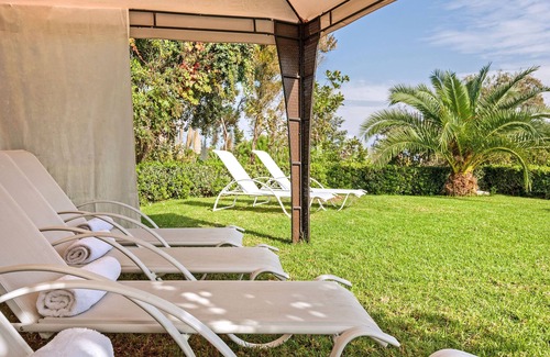 The poolside and garden offer spots both of cool shade and radiant light, as well as privacy and an infinite view.