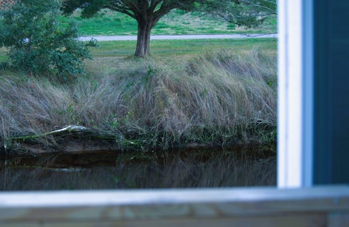 The Outer Banks Motel on Cape Hatteras is offering a unique opportunity to stay in one of its original, though recently renovated, two bedroom cottages that was moved from the oceanfront location decades before to rescue it from an impending hurricane. The guest favorite "G3" as we call it, is part of the 'Garden Cottages Collection' and is safely located one mile from the oceanfront on the historic Cape Creek Canal. After registering and procuring your cottage keys and directions from the main office located on the oceanfront, you'll park in the gravel lot that was once a lush family garden 50+ years ago. After climbing a few short steps to the deck overlooking the Creek, your key opens the storm door to the glassed-in four-season porch complete with rocking chairs. Another keyed door off the porch opens into the living area. The main interior boasts an open floor plan with each of its two bedrooms opening into the main living and dining area. Each bedroom has an antique dresser, double bed and a twin bed, closet, and extra blankets. The bedroom windows look out onto the Canal. The complete kitchen has all the amenities you may need, including a full range, full sized refrigerator, microwave, dual tub kitchen sink, standard coffee maker, toaster, and electric can opener. Every utensil, pan, pot, and complete set of dishes are there for your convenience. A full-sized dining room table with six chairs is situated between the kitchen and living room area. The living room has a comfortable leather sofa and nautical-themed lounge chair with extra pillows. A 32" Smart T.V. with standard cable and internet is there for your rainy day enjoyment. Several family heirloom antiques are blended throughout the decor adding to the relaxed island atmosphere. The full bathroom is located at the far end of the cottage, complete with bathtub and shower for those days when only a long soaking bath will do. On clear nights, you may see the Cape Hatteras Lighthouse light circle the sky every seven seconds over the Creek. Full access to the pool, hot tub and oceanfront amenities are included.