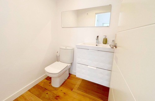 This house has 4 bedrooms, 2 bathrooms and 1 toilet, it also has a dressing room and kitchen with island and solid wood dining table. Solid wood parquet floors and double glazed double glazed windows lacquered all in white. The rooms all face the outside with views of the mountain, where, when it rains, you can enjoy two impressive waterfalls that spring from the heights of the mountain, giving us views worthy of the natural beauty of the wonderful Island of Palma. from Mallorca.