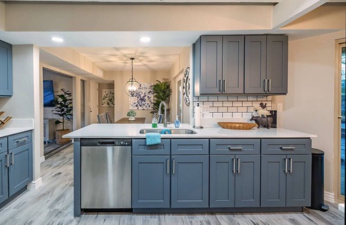 Vista Velo is an Upscale Short Term Rental for those who can afford the very best! Imagine socializing in your personal in ground hot tub while taking in amazing views of the Catalina mountains. Would you believe there is a nature trail through backyard botanical gardens with unique desert plants and flowers? Perhaps you and your guests would prefer sitting next to the beautiful fountain located under two mature palm trees? Enjoy some outdoor exercise by swimming laps in our 40' lap pool. With two master suites each with their own bathrooms, this home is a great choice for two families visiting Tucson together. This Tucson home has old world burnt adobe construction on the outside which has been completely remodeled in 2022 on the inside. The entire interior contains all new furnishings and appliances and features a modern farmhouse theme. This unique home features four bedrooms two of which are well-appointed with King beds, and two of which have Queen beds. The Master Bedroom has a private 3/4 bathroom and the EnSuite located on the other side of the house also has a private 3/4 bathroom. There is also a full bathroom in the hallway for bedrooms 2 and 3 to share. An air mattresses in the closet allows another 1 or 2 children to sleep in the living room. The home has a large backyard perfect for spending time outdoors with an outdoor living area, outdoor dining area, in ground hot tub, and botanical gardens with a nature trail. The home’s 2 car garage comes complete with a fully stocked bicycle shop. This home comfortably accommodates up to four couples sharing a residence during their trip to Tucson. Vista Velo include a desk with computer monitor with HDMI cable and remote keyboard/mouse making this home and easy choice for those needing to work remotely during their stay. This home is equipped with Comcast’s 1 Gigabyte high speed internet offering you the fastest WIFI available in a vacation property in all of Tucson! For fellow cyclists looking to set up base camp for training, this home is located 1 mile away from The Bicycle Ranch which has a weekly Saturday Group Ride that rides up Dove Mountain. For runners and hikers, Sabino Canyon Recreation Area is nearby which offers excellent trail running and hiking. Whole Foods, Trader Joe's, and many of Tucson's premier restaurants are nearby, as well. Text as much or as little as you want throughout your stay, we are happy to answer questions about the property and the area to make sure you have a great experience at our home while visiting Tucson! Looking for a home for your wedding/graduation party/celebration of life event? Look no further, we allow events at our homes and have hosted several at this property!