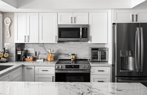 Walk through the door and feel instantly at ease. The updated kitchen, equipped with contemporary stainless steel appliances, is perfect for cooking up a delicious meal after a day of discovery.