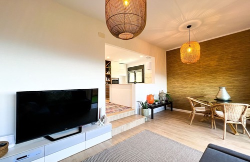 - Living room, 2 bedrooms, 1 with a double bed and the other with bunk beds, 1 bathroom with shower and an open equipped kitchen.