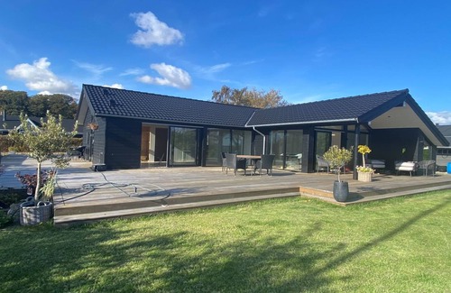 Single-family house, built in 2023. 10 m from the sea. Private: natural state property 1'350 m2. Barbecue. In the house: washing machine, tumble dryer. Parking at the house. Grocery 4 km. Golf course 14 km. The owner does not accept any youth groups.