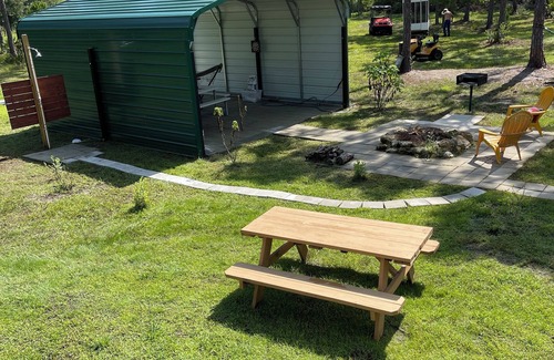 Welcome to Paradise Ranch, where you can escape the constant city lights and enjoy the starry sky around the fire pit. The RV is situated on five acres of private land, allowing you to explore the great outdoors of Florida during your stay. The ranch is just 30 minutes away from Lake Okeechobee. Additionally, if you are traveling with a trailer or a boat, there is ample parking space available.