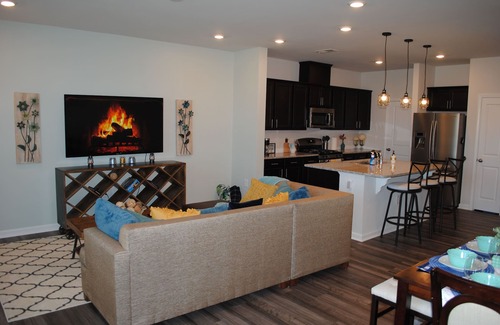 This home features 3 bedroom 2.5 baths with 3 queen size beds and 2 twin xl beds. The master suite is on the opposite side of the house from the other 2 bedrooms. The beautiful open floor plan keeps everyone engaged 'while downstairs enjoying the space.