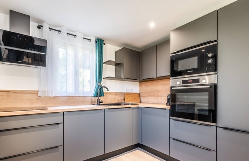 Nestled in Annecy, this 4-bedroom, 5-bathroom villa brings it all within your reach. Fans of nature and the outdoors will love being 6 minutes by car from Lake Annecy and 7 minutes from Jardins de I'Europe. Make short work of the 5-minute drive to Centre Commercial Courier or the 7-minute drive to Notre-Dame-de-Liesse Church.