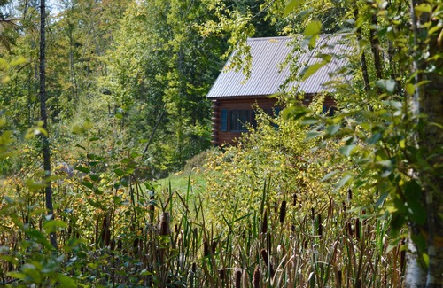 Enjoy a well appointed 2 bedroom 2 bath log cabin in remote mountain location just 25 minutes from St. Johnsbury. Have a beverage while watching the dancing flames of the wood burning stove. Wake up in a king size bed and look out to the ducks or geese or otters in the pond. Listen to the cascading water of the babbling brook from the screened in back porch. Go on a wildlife photo safari on the trails of the 23+acres of our boreal forest which is the backyard.