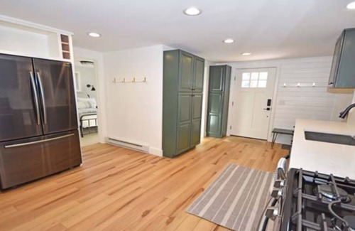 On a private, wooded lot, you can spend lots of time outside breathing in the peace and quiet at The Burrow. Sip your coffee on the shaded deck before heading down to the lake 0.1 miles away. When you come back, there’s nothing better than a hot outdoor shower. Then fire up the grill and dine al fresco on the deck with a glass of local wine, set up some lawn games in the spacious yard, and end the night relaxing on Adirondack chairs around the fire pit with some gooey s’mores. Everything you need is right here at The Burrow, including the firewood!