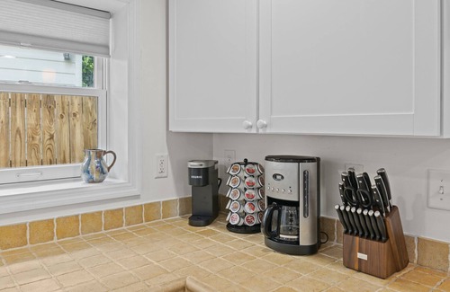 The fully-equipped kitchen offers all the necessary appliances and utensils for a seamless cooking experience, including a dishwasher. Savor your choice of drip coffee or Keurig. We provide coffee, creamer, and sweeteners.