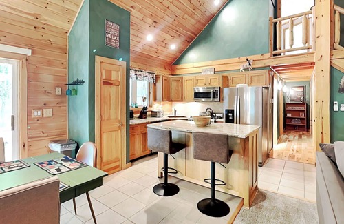 This property features an array of amenities meant to make your stay enjoyable including year-round fun in the indoor pool. The flagstone patio boasts a built-in hot tub, gas grill, picnic-style dining and lounge seating. Gather around the fire pit in the evenings and relax under a starry sky as you recount the day’s adventures. Or head to the game room and engage in a little friendly competition with a game of pool. With a blend of modern comforts and rustic charm, Wander Through the Woods truly serves as a haven for tranquility amid nature.