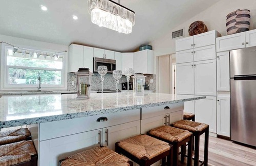 Free shared use of our 2 kayaks, swimming pool, Bay-front beach area, fishing dock, outdoor seating, outdoor Ping-Pong table, and self-serve Tiki Bar area.