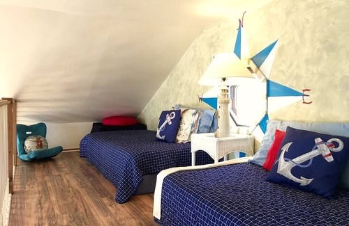 Spacious lakefront home on a clear and sandy all-sports lake. 75 feet of personal lake frontage on Little Twin Lake with your own dock and a shed full of water toys. Over 1400 sq ft, 3 bedrooms, plus a loft with 2 twin beds. Queen-size sleeper sofa in the living room. Extra mattresses and fold-out ottomans for extra guests. Full-size bathroom and laundry room, complete kitchen with everything you need. Completely furnished including linens. Large deck and gas grill for enjoying the views and sounds of the lake while grilling out. Firepit for enjoying a cozy fire by the lake with friends and family. Nice sandy area for the kids to build sandcastles. It's the perfect getaway. Parking for THREE cars.