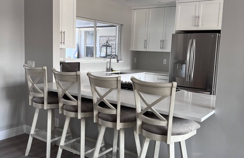 The "Coastal Tranquility Haven" is beautiful newly renovated private waterfront residence with a pool, private dock, and cozy accommodations. There is an apartment on side with its own entrance. The owners are gone most times, but occasionally they are there. You won’t see them unless you are in need of something. The home has plenty of dock space with electric, water, and fish cleaning station, so bring your boat for the weekend or stay for a lifetime! This home offers a chef's kitchen with every gadget and appliance you could desire to serve you during your visit. The property is located close to numerous nearby restaurants that are assessable by both boat and land. The property is less than 8 miles to the beach by car or a short boat ride down the St. Lucie River to the ocean.