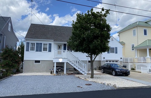 Single family beach house with 60' on water with dock for your 30' boat and 2 floating docks for your jet skies. Ideal for 2 families up to 8 occupants. 1st floor has 27' x 29' game room with ping pong table , darts and 55' TV. 2nd floor features an open floor plan between fully equipped kitchen and living room. Also, 2 bedrooms (1 with queen bed) (1 with 2 twins) and 1 bathroom. The 3rd floor has 2 bedrooms with full size bed, bunk beds, 2 single beds, 1 bathroom and laundry room with washer and dryer. Each room has either a built in wall AC or window units. There is a total of 5 TV's and 1 Xbox. Each TV has all local OTA channels and can stream all popular internet TV apps, HBO GO,Netflix,starz,CBS all access etc. Backyard contains upper deck with large table, motorized awning, grill, grade level deck with lounge chairs, fire pit, outside shower and sink. Go swimming, boating, kayaking, fishing and crabbing from your backyard. Included are 3 kayaks,3 bikes, crab traps, inflatables, beach chairs and life vests. Boat ride to the bay is 4 min (without wake). You will be very close to the popular boat anchorage (Ship Bottom Sand Bar) on LBI. Driveway has parking for 4 cars. Location is 5 minutes from the LBI beaches and 28 min from Atlantic City.