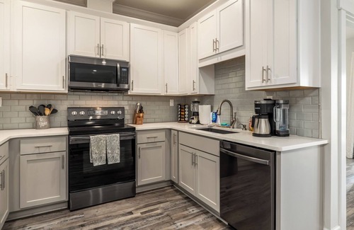 • Fully equipped kitchen with stainless steel appliances and subway tile backsplash
