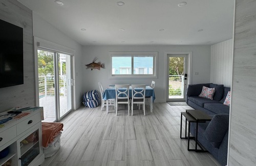 This beautiful waterfront home is located on a large lot on a wide turning basin at the end of a canal, which offers unobstructed views down the canal. This modern home boasts updated, high quality finishes and appliances. The rental is for the upstairs portion of the house, which has 2 well-appointed bedrooms, 1 full bath, and spacious living & dining spaces. The comfortable living area has a large smart TV and sliding glass doors providing natural sunlight and canal views. There is a full wrap around balcony, which is perfect for outdoor dining and relaxation. The house is equipped with all major appliances, utensils, and a Keurig coffee machine. The spacious lot and back yard offer a quiet and peaceful atmosphere. The canal opens to Blackwater Sound in the Florida Bay and is just minutes away by boat from Adam's Cut for ocean access. The boat lift is not available for use. The downstairs portion will be unoccupied during your stay. There is a covered car port.