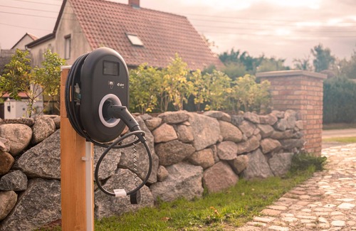 Electric car charging station on site
