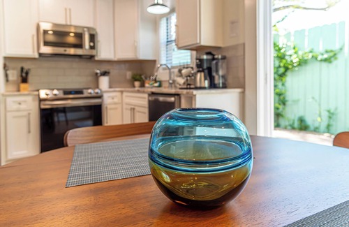 **Main Floor Fun:** Kick back in the living area, whip up your favorite dishes in the fully stocked kitchen, and sip a drink on the private patio. Plus, a half bath and full-size washer/dryer are here to keep things easy.