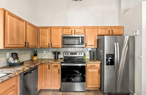 Kitchen: Fully stocked with cookware, utensils, modern appliances, and an island for prep or casual dining.