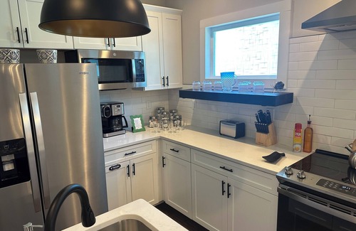 Welcome to Dandridge Tennessee, second oldest city in TN. This brand new 3-bedroom, 3 full bath house is perfect for your private escape or a weekend getaway with friends. Whatever you choose guests will find a pleasant and comfortable stay. Equipped with 2 king beds and one Queen bed, each with its own full bathroom, there is space for everyone.The property offers parking for 2 vehicles, AC, WiFi, Smart TVs fully stocked kitchen with everything you need to have a comfortable stay. Full coffee bar both upstairs and down. Beautiful full size decks on all levels. Back deck has a view of the stunning landscape with a full outdoor dinning table and gas barbecue. The deck off the master offers 2 relaxing rockers for those lazy mornings enjoying your coffee. The property has a washing machine and dryer for your convenience. Steps away from historic downtown Dandridge to enjoy local eateries, antique stores or a new favorite brewery. Blue On Main sits 2 blocks from beautiful Douglas Lake, with swimming, fishing, boating or whatever your favorite water sport. Fall in love with Blue on Main in Dandridge and enjoy the magic it has to offer. Blue on main is located 5 minutes from Field of Dreams Sports Complex and 40 min from Gatlinburg/ Pigeon Forge /Dollywood and 30 minutes away from Sevierville. If you are looking for more space for a family reunion, employee travel or multi-family vacation “Orange On Main” (next door) is available also.