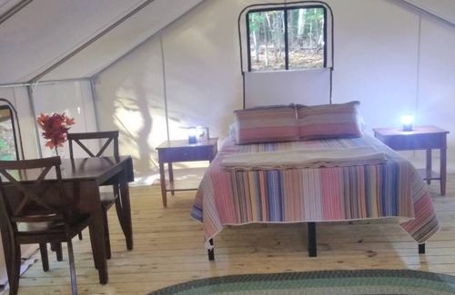 Hygge (hue-gah) is a Danish concept which translates to a calm and comfortable space and time with friends and family (or by yourself), in an atmosphere of warmth, well-being and coziness. Hygge Headquarters is located in the Adirondack Mountains in upstate New York. We are 30 minutes or less from Lake George and many other recreational activities such as railbiking, skiing, hiking, fishing, kayaking, public hunting land and white water rafting. Breakfast included. Outhouse located near tent.