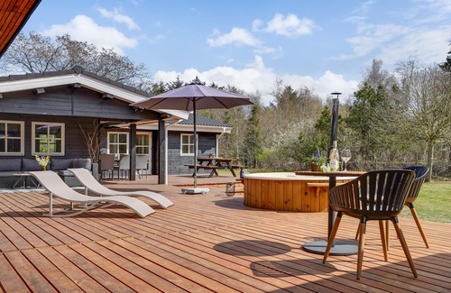 In the eastern part of Fur you will find this vacation home on a large open plot. The house is tastefully decorated and offers a cozy atmosphere. From the living room you can directly access the terrace, which is partly covered, so you can sit in the shade or in the sun, just as it suits you. It is closed to the street. There is a large covered summer kitchen and an outdoor shower. Comfortable lounge furniture invites you to relax and there is a wood-fired outdoor hot tub, where you can relax with a view of the natural property.
