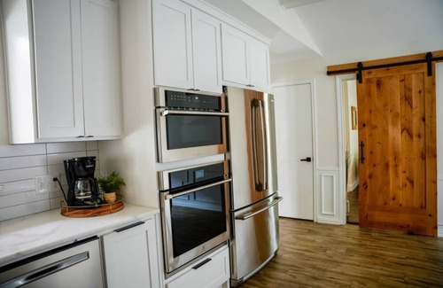 Brand new garage with 2 parking spaces. High Pottery Barn bedding and Four Hands furniture.