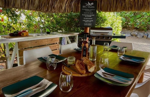 On the property is our great pool with a natural stone deck, a barbecue area under our palapa and for divers, or those who want to become one, our own diving center. The bungalows are connected to the fiber optic network and we therefore offer fast, reliable WiFi. A washing machine is available in reception for a small fee.