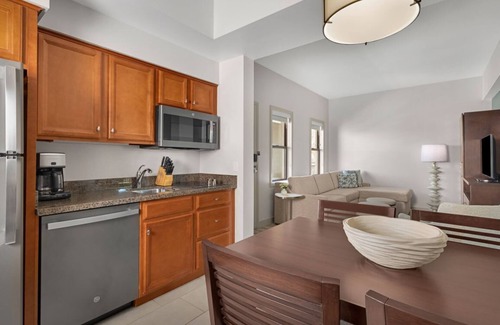 • Well-equipped kitchenette with glass cooktop, microwave oven, full-size refrigerator with icemaker, dishwasher, coffee maker, toaster, blender and dinnerware