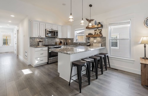 New Single Family Home 4 Bed / 2 Bed. This newly renovated and fully furnished house is immaculate. Located 2.5 blocks from beach. The rental is a spacious 4 bedrooms, (sleeps 7), 2 baths, floor plan including a family room, fireplace, dining area, and a fully stocked gourmet kitchen (coffee machine, toaster, pots, pans ..). Private driveway. Pet Friendly. The unit has a private outdoor shower and deck private with gas grill and outdoor refrigerator.