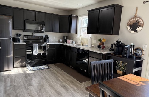 Whistle Inn-only minutes from Landing, Convention Center and Lake Taneycomo. Walk to shopping, scenic train, conventions, distillery and restaurants. One block from the free trolley stop. Short drive to concerts. Upper deck for relaxing and grilling. Fully equipped kitchen to prepare your meals. Patio off master bedroom to enjoy morning coffee. Full laundry room off kitchen. TV's in every bedroom and a 65" TV in the living room. Short walk to everything downtown has to offer. Private driveway. Perfect location for your visit to Branson. New home in perfect downtown location. Bedrooms are on lower level. Enjoy the day at your favorite attractions and come back to relax while avoiding most of the traffic. No need to search for parking spaces downtown, all within walking distance or a short trolley ride, hours vary. Backyard has privacy fence.
