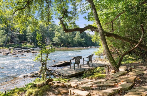 Discover the perfect retreat in our two-story duplex cabin that’s designed for the ultimate getaway. With spacious accommodations, top-notch amenities, and breathtaking surroundings. Experience Luxury: Fully equipped kitchen, a cozy living room, hot tub, firepits, grill & chill areas. Outdoor Bliss: Just 400 ft away, the Chattahoochee River invites you to fish, kayak, or simply unwind by the water’s edge. LOWER LEVEL ONLY — my elderly mom lives in the upper level of the soundproof duplex.