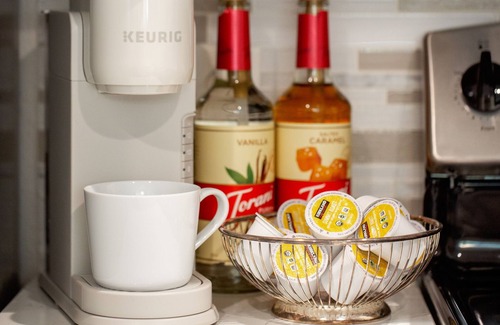 Wake up, grab your coffee, and enjoy the peaceful surroundings at the Wild Side Retreat. You can start your day by relaxing in the cozy living room, or step outside to the private patio to soak in the lush, green views. If you're in the mood for cooking, the well-stocked kitchen has everything you need, including K-Cups, flavor syrups, and a variety of spices. Or, take a short drive to explore the best local dining and attractions nearby.