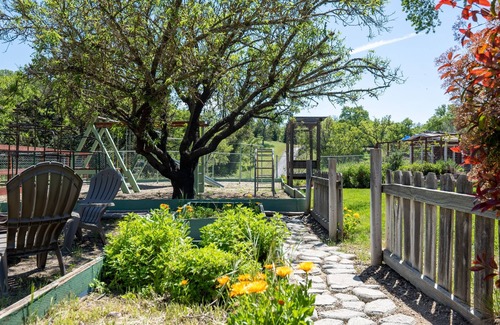 Guests have private access to the private fenced yard adjacent to the unit which contains a propane BBQ, picnic table, wood-burning firepit with seating, a playground and flower/herb garden. Please be aware that our gardener usually comes on Friday, mid-day, to do his maintenance. His schedule may vary without notice to the guests. He will not need access to the inside of the home but will let himself into the garden/yard area.