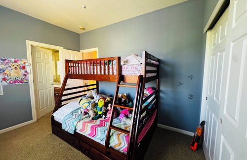 Your cozy getaway awaits in Livermore at this lovely house. With 5 bedrooms including 2 king beds, 1 queen bed, 1 twin bed, and 1 bunk bed, this excellent property offers plenty of space for guests to relax and unwind. The house also features amenities like a washing machine, heating, and AC for added convenience. Experience the magic of Livermore at our wonderful house. Available from May 30th to June 24
