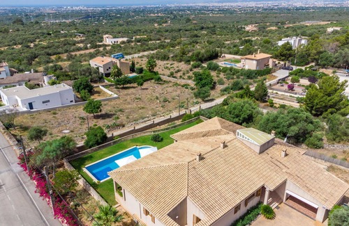 Welcome to "Vista Mar y Tierra," a very large and comfortable villa situated in the residential area of Sa Cabaneta, Marratxí, Spain. This well-maintained property boasts a beautiful, lush garden with a lawn and wildlife area, making it an ideal vacation rental for those seeking a tranquil escape. Enjoy the angular swimming pool (10 x 5 m, depth 120 - 210 cm), complete with a salt-electrolysis cleaning system and available year-round. The villa offers ample amenities, including Internet Wi-Fi, parking, a yard, and a single garage.