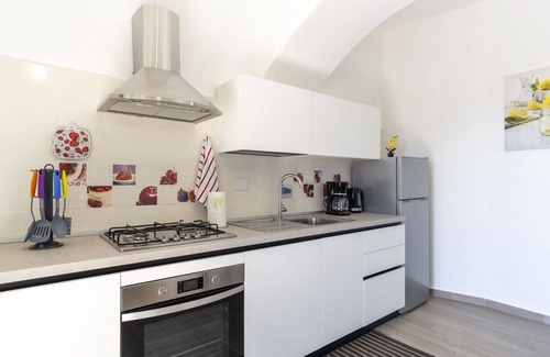 The "Il Giardino" is a 3-room apartment spanning 100 square meters on the ground floor, recently renovated in 2023 with comfortable and tasteful furnishings. It features a living/dining room with a TV and an exit leading to the garden. There are 2 double bedrooms, and an open kitchen equipped with an oven, dishwasher, 4 gas rings, toaster, kettle, and an electric coffee machine, also with an exit to the garden. The apartment has a shower room with a bidet and WC.