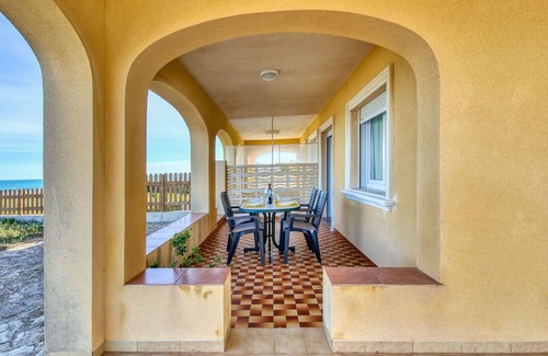 You are considering a vacation rental known as "Casita Mar," a two-story semi-detached house situated in the resort town of Denia, Spain. This property boasts a quiet and sunny location, merely 10 meters from the sea and 5 meters from the beach, offering direct access to the sandy shores. It features a yard, Internet WiFi, and parking facilities that can accommodate up to three cars on the premises.