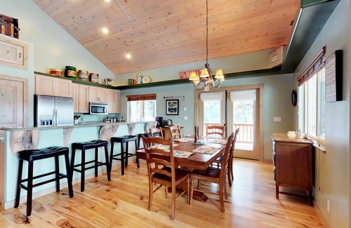 Take a memorable vacation to the woods of Idaho at this lodge, where you'll enjoy a wraparound deck, amazing woodland views, and proximity to Payette Lake and charming downtown McCall. This spacious, ranch-style home sits among the trees one block from the Payette River. Pass the sparkling summer months by sunbathing on the lake beach at Legacy Park, four miles north, practicing your drive at the McCall Golf Club, six miles northeast, and hiking through Ponderosa State Park, six miles north. Come wintertime, you can ski and snowboard all season at Brundage Mountain, 14 miles north.