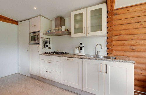 The house has been constructed entirely from tree trunks, giving it an adventurous, warm atmosphere. You have a magnificent view of the pond from the large window in the living room. There's a large garden and a lovely terrace. There's a children's bed as well. You can use the hot tub in the home for a fee. You're allowed to bring 5 pets for €12.50/pet.