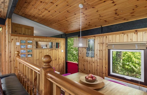 The lodge has an external fairy light-lit covered deck area which is superb for airy, external relaxing. The rear area also has seating set within the woodland adjacent and a chiminea. The spacious external spaces surrounding the lodges are available for guests to use. 1 adjacent parking space is for use by guests.